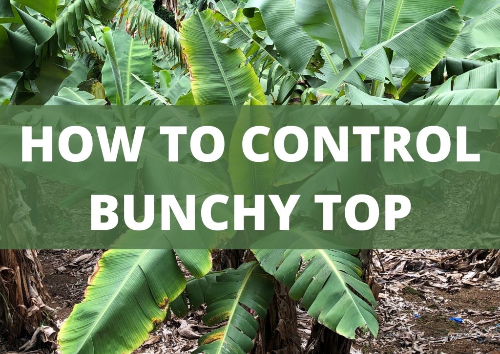 1: By the banana aphid, a small black insect which looks like other aphids you see in your garden, but only the banana aphid can spread Bunchy Top Virus, after it has fed for many hours on an infected banana plant. All banana plants may have banana aphids, but not all aphids are carriers of the disease.